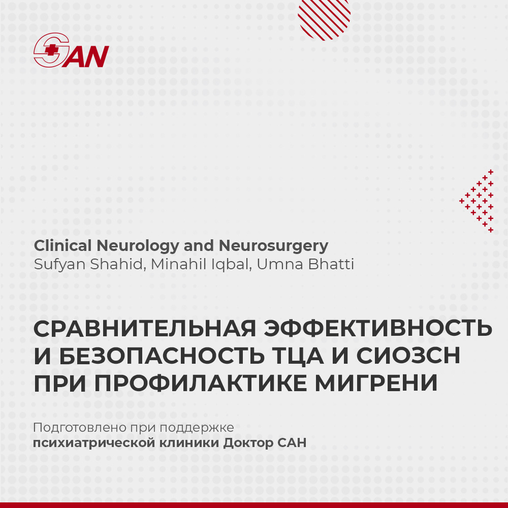 В журнале Clinical Neurology and Neurosurgery опубликован систематический обзор и метаанализ рандомизированных контролируемых испытаний, направленных на сравнение эффективности и безопасности трициклических антидепрессантов (ТЦА) и ингибиторов обратного захвата серотонина-норадреналина (СИОЗСН) при профилактике мигрени. Метаанализ показал, что и ТЦА, и СИОЗСН приводили к снижению числа дней с мигренью в месяц по сравнению с исходным уровнем. Разницы между группами по этому показателю обнаружено не было. При этом СИОЗСН демонстрировали небольшое преимущество по сокращению длительности приступов и значимо меньшую частоту побочных эффектов по сравнению с ТЦА. Подробнее о мигрени: https://doctorsan.ru/lechenie-migreni