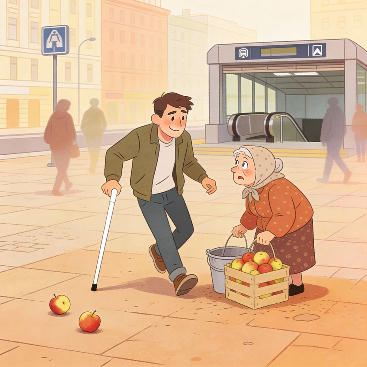 Еще одним тревожным препятствием слепых являются бабушки. Да-да, вот те самые купчихи, которые располагаются в самых неожиданных местах. Вот вчера иду себе к метро, а у меня возле станции достаточно большое пространство, что-то вроде площади, где нет никаких ориентиров, и в основном приходится идти либо по наитию, либо за шагами прохожих. Иду себе, внимательно прислушиваясь к окружающим, и тут хлоп — спотыкаюсь об нечто. Конечно же, оно падает, я, разумеется, извиняюсь… Это слепой автор блога «Будни слепака» Максим Спиридонов. Продолжаем И слышу в ответ: «Ах ты, зараза! Вот я так и думала». Эту фразу лучше всего, конечно, воспроизводить голосом, потому как в ней было столько негодования, да и слово «зараза» заменяет несколько другое. И вот что мне первое пришло в голову: ну раз, как ты говоришь, знала, что же молчала-то? Надо было как-нибудь слепому обозначить себя, сказать, чтобы он был аккуратен. Я бы, заслышав человека, сменил траекторию движения. Хорошо хоть у меня не возникло н
