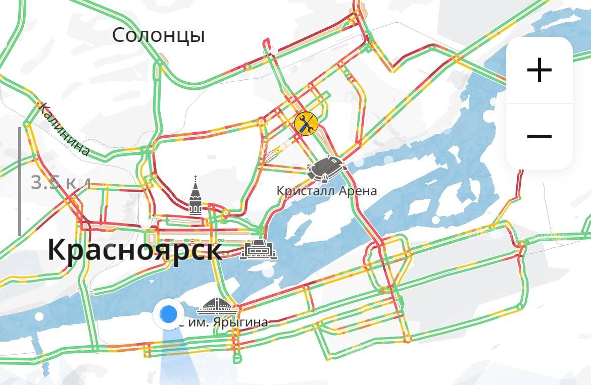 Сейчас в Красноярске 8 баллов, заторы на всех основных улицах.