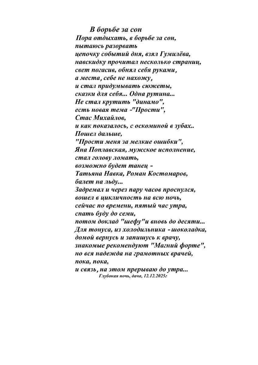 Главное, не во врямя проснуться, а во время уснуть...