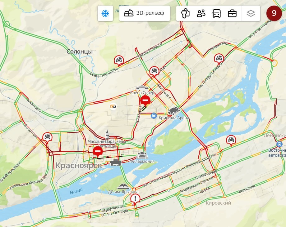🚦Красноярск сковали 9-балльные пробки Вечер пятницы может омрачить дорожная ситуация в городе. Тяжелее всего ситуация обстоит на ул. Брянской, Молокова, Семафорной, Михаила Годенко и на Николаевском проспекте. ______ 🔴Оставить обращение ✏️ 🔴Мы в MAX
