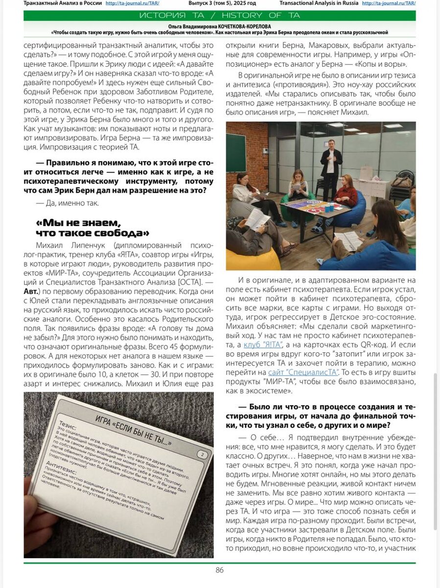 Вышло первое в жизни интервью со мной в журнале «Транзактный Анализ в России» 🥹❤️