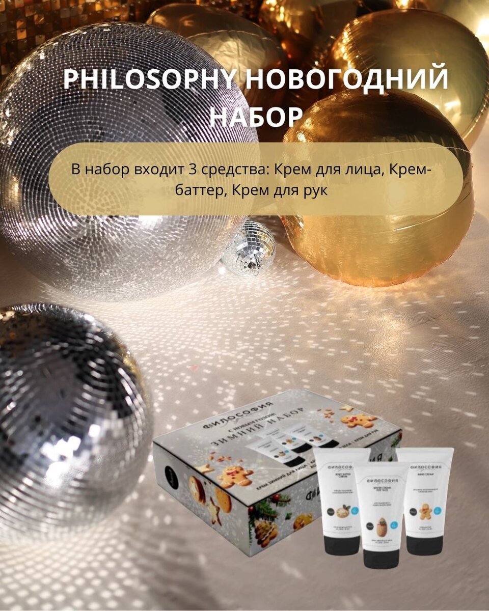 ΠΎΠ΄ΠΈΡ 3 ΡΡΠ΅Π΄ΡΡΠ²Π°: ΠΡΠ΅ΠΌ Π΄Π»Ρ Π»ΠΈΡΠ°, ΠΡΠ΅ΠΌ-Π±Π°ΡΡΠ΅Ρ, ΠΡΠ΅ΠΌ Π΄Π»Ρ ΡΡΠΊ. Π¦Π΅Π½Π°: 1155 ΡΡΠ±. 2. Philosophy (ΠΠΎΠ²ΠΎΠ³ΠΎΠ΄Π½ΠΈΠΉ Π½Π°Π±ΠΎΡ 5 Π² 1) - Π Π½Π°Π±ΠΎΡ Π²Ρ