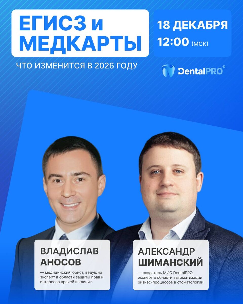 Обстоятельно поговорим об этом в рамках бесплатного вебинара от команды DentalPRO и Владислава Аносова 🦷