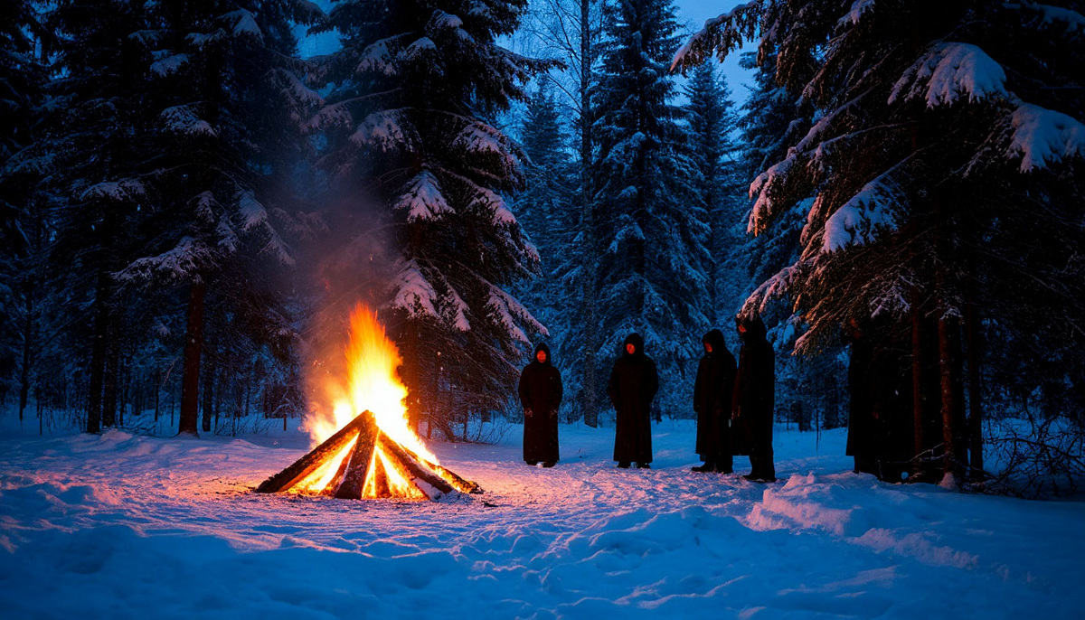 Он вышел к краю поляны и прижался к стволу огромной ели. Там, где должен был лежать снег по пояс, чернела голая, промерзшая земля. А в центре полыхал костер. Пламя было не оранжевым, а белесым, холодным на вид, и от него не шло тепла. Вверх летели не искры, а хлопья черной сажи.