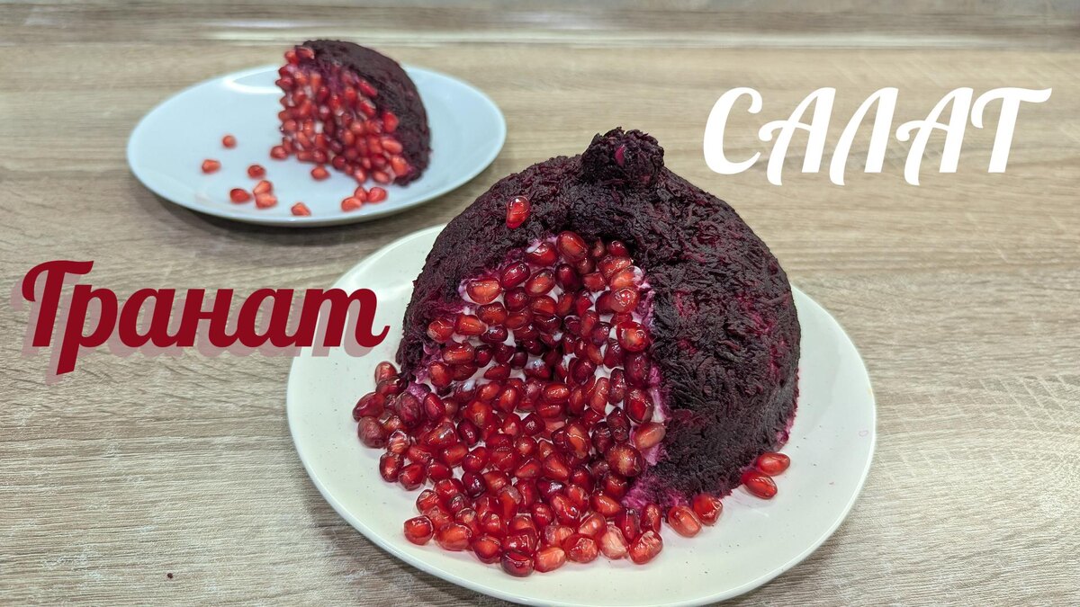 Игра текстур и вкусов: сочный гранат, нежная курица, пикантный сыр и хруст орехов. Гастрономический взрыв! Ингредиенты: Курица (филе) — 200-300 г (отварное или запеченное, мелко порубить или разделить на волокна) Яйца — 2 шт. (сваренные вкрутую) Сыр (например, российский) — 100-150 г Орехи грецкие — 70-100 г (обжарить на сухой сковороде и порубить) Чеснок — 1-2 зубчика (пропустить через пресс) Гранат — 1 крупный или 2 небольших (для зерен и украшения) Свекла — 1-2 шт. (небольшие, отварные или запеченные) Майонез — для заправки (по вкусу, 150-200 г) Соль, черный перец — по вкусу Шаги приготовления: 1. Подготовка основы: Куриное филе мелко порезать или разобрать на волокна. Яйца и сыр натрите на терке или очень мелко порубите. Свеклу натрите на МЕЛКОЙ! терке. Орехи измельчите ножом. Чеснок пропустите через пресс. Гранат разберите на зерна. 2. Формирование «граната»: В удобной большой емкости (салатник) смешайте измельченные: