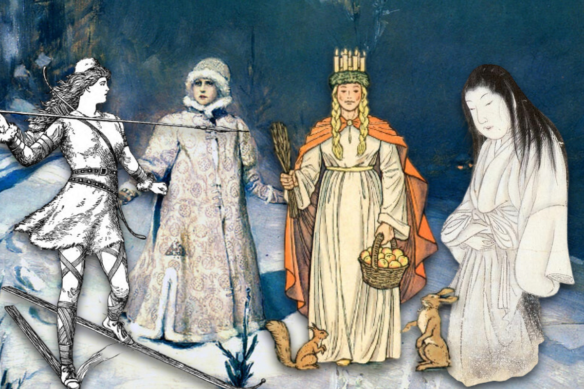 Снегурочка — кажется, до невозможности русский персонаж. Настолько русский, что ее легко представить где-нибудь между оливье и мандаринами. Но если отвлечься от новогодней мишуры, у этой «ледяной девы» неожиданно много родственниц: от норвежской богини зимы до японского духа метели.