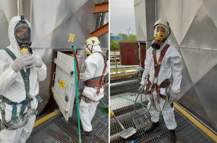 В связи с агрессивной щелочной средой золы, способной вызывать химические ожоги кожи и слизистых, были применены усиленные средства индивидуальной защиты (СИЗ): Полнолицевые маски для защиты органов дыхания и зрения Специализированные защитные комбинезоны Химически стойкие перчатки Все работы выполнены с соблюден