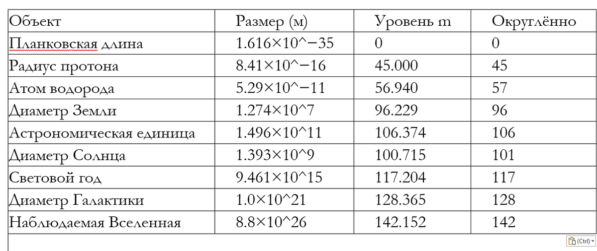 Вот как с точки зрения этого расчета выглядят известные науке масштабы: