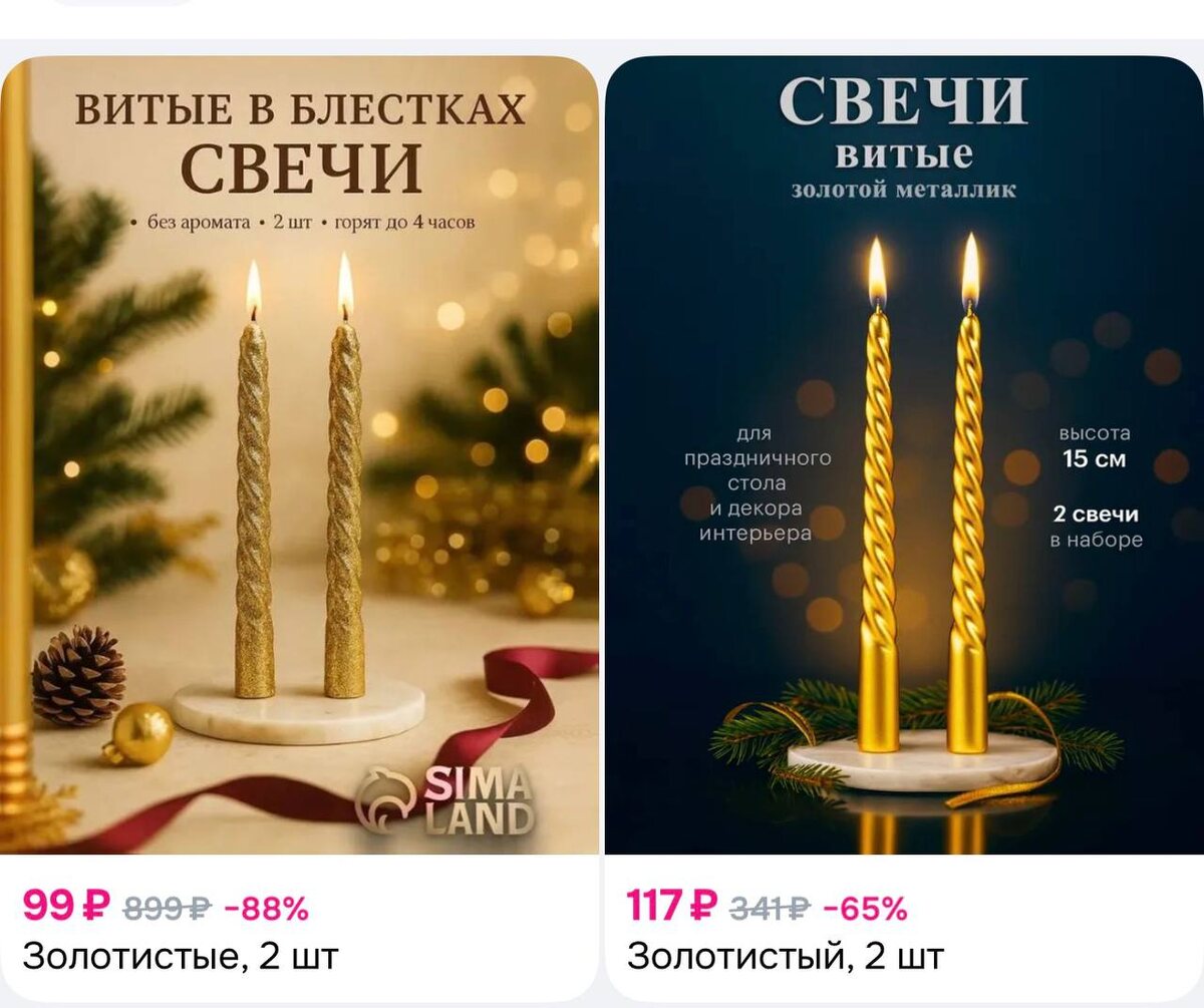 🕯Свечи новогодние, витые набор из 2 шт. 15 см. https://ozon.ru/t/wWu2HsX