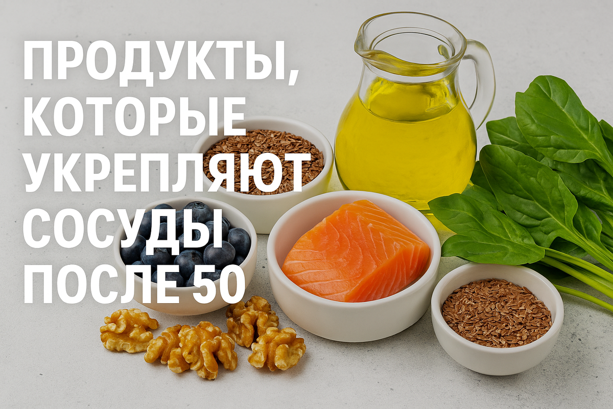 После 50 лет проблемы с сосудами выходят на первый план. Повышенное давление, головокружения, холодные руки и ноги, шум в ушах — всё это часто списывают на «возраст». Но на самом деле сосуды страдают не из-за цифры в паспорте, а из-за питания и образа жизни, которые годами их изнашивали. Хорошая новость в том, что сосудистая система остаётся пластичной даже в зрелом возрасте. Исследования показывают: изменения в рационе способны улучшить состояние сосудов уже через 6–8 недель. Разберём, какие продукты действительно работают — без мифов и маркетинга. Почему сосуды слабеют после 50 С возрастом происходят три ключевых процесса: Снижается эластичность сосудистой стенки — она становится жёстче. Усиливается хроническое воспаление. Нарушается баланс холестерина — растёт доля «плохого» LDL. На это накладываются гормональные изменения, особенно у женщин после менопаузы, и снижение физической активности.