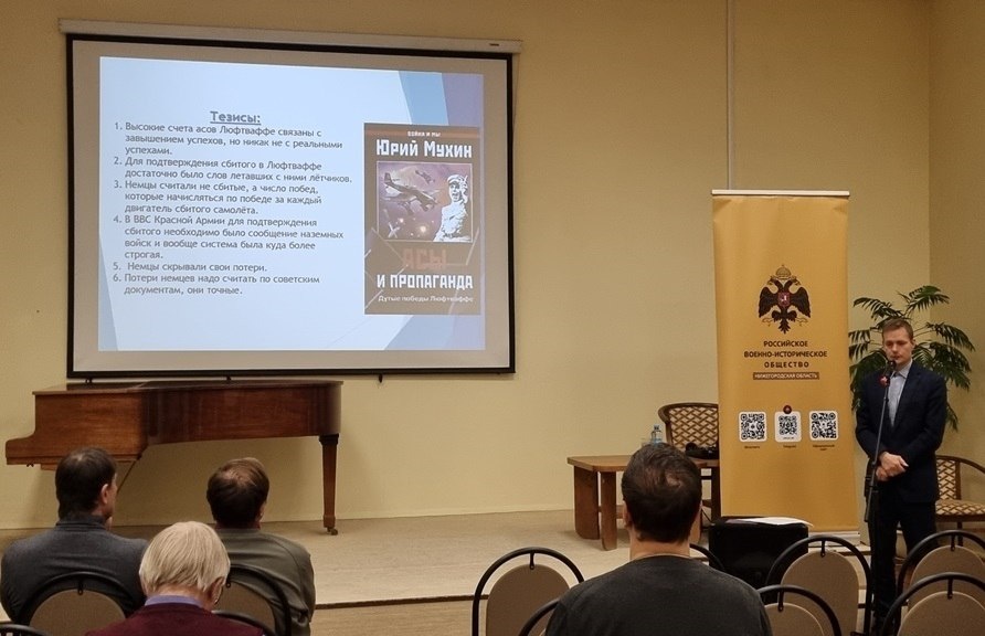 #Год_защитника_Отечества 9 декабря в библиотеке прошла историческая лекция Никиты Баринова «Асы и пропаганда: как подсчитывали свои потери и потери противника в авиации стран, сражавшихся во Второй мировой войне». В этом году наша страна отметила 80-летие Победы в Великой Отечественной войне. Все эти годы мы помним подвиги героев, чтим их память и стараемся сохранить историческую правду о войне. Но эта тема все равно остается актуальной и востребованной. Никита Баринов — член Российского военно-исторического общества (сфера его основных интересов – изучение и популяризация военной истории), опытный лектор, спикер военно-исторического интернет-канала TacticMedia, организатор и лектор дискуссионного клуба «Картина мира». В лекции очень подробно было рассказано о различиях в методике подсчета сбитых самолетов у советских воинов и их противников. Исторические лекции планируется продолжить и в следующем году.