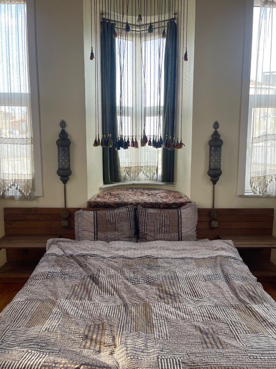 Квартира в Стамбуле расположилась в центральном районе Галата и была прекрасной! Всем своим видом она выдавала хозяина с безупречным вкусом и чувством стиля, а турецкий подтекст читался в каждой детали) турки для кофе, ковры, занавески, лампы Алладина, узоры, полумесяц. А вот сам район Галата оказался не таким уютным: слишком оживленный и отнюдь не "friendly" к коляскам - неровная брусчатка, горки и отсутствие выделенной туристической зоны - создавали нам постоянные помехи. А так хотелось просто отдохнуть, погулять налегке! В поисках мороженного мы смешались с туристическими толпами, которые несли нас по этой брусчатке, и, наконец, прибросили к мороженщику. -Это тот самый знаменитый мороженщик, - в восторге прокричал Роберт, - я видел видео с ним. Он делает классное шоу! Пошлите, сейчас будет весело. Если вы знаете, в Турции с мороженщиками есть особая традиция. Прежде, чем отдать дондурму (мороженное) ребенку или взрослому - они хорошенько подразнят клиента - вроде отдают тебе мороже