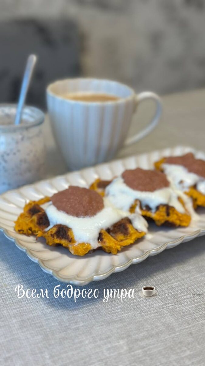 На завтрак морковные вафли с греческим йогуртом и фруктовым пюре🧇