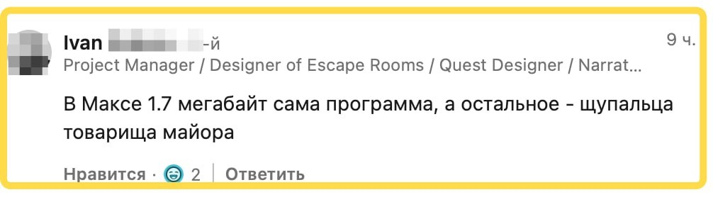 Писал про размер сборки мессенджера MAX под iOS (около 90 Мб) и вот, читаю комментарий. Пишет явно ИТ- специалист. И он не шутит. Я иногда думаю, что живу в зазеркалье ... Ну какие щупальца? Да, там много разных библиотек, но не меньше чем, скажем, в Телеге. Да, продукт еще сыроват, но обновления выходят активно - шлифуют. Взрослые люди, а верят в такую чушь, дивую даюсь. Русский ИТ бизнес
