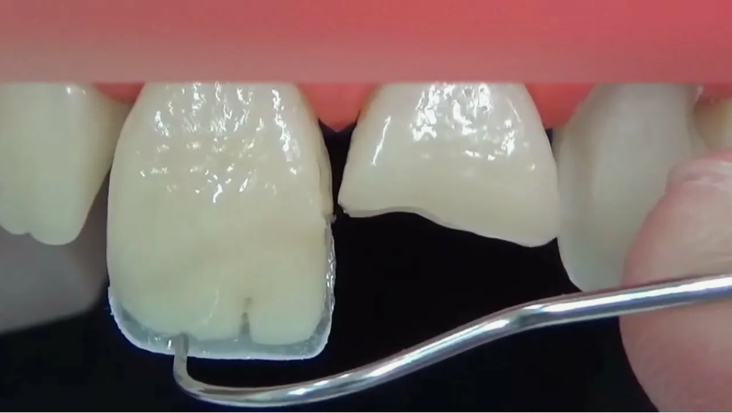 · Суть: Это тонкие (0,3-0,7 мм) накладки на переднюю поверхность зуба, изготавливаемые в зуботехнической лаборатории по слепкам пациента.