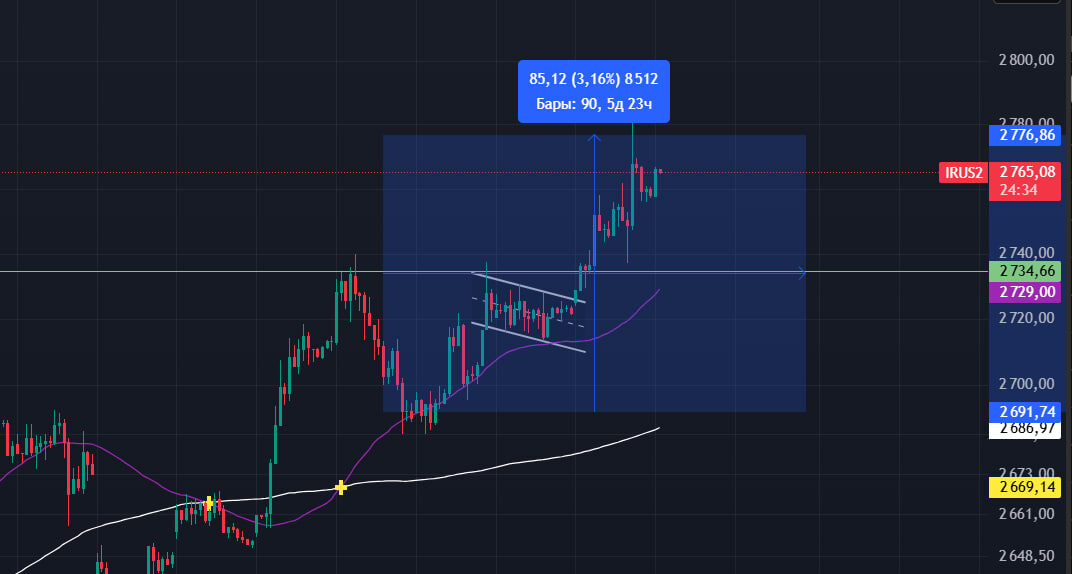 Уровень поддержки в данный момент 2740.