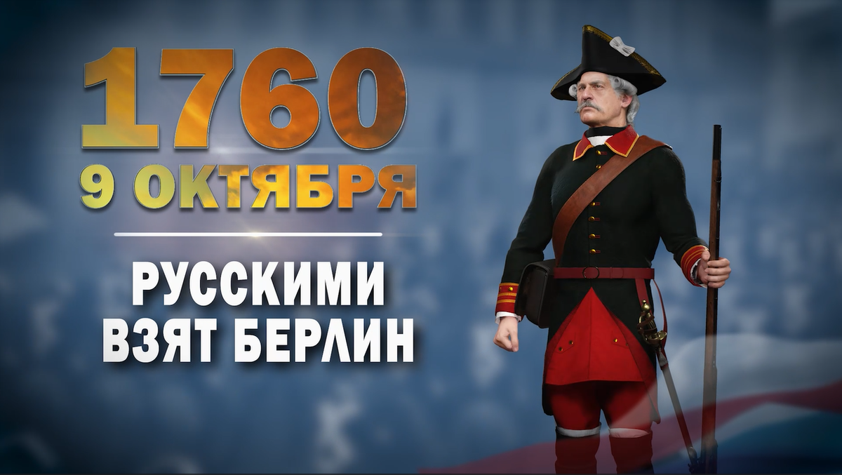 9 октября - Памятная дата военной истории России. В этот день в 1760 году русские войска в первый раз заняли Берлин. Словно предвидя 1813-й и 1945-й, граф Иван Шувалов тогда изрёк: «Из Берлина до Петербурга не дотянуться, но из Петербурга до Берлина достать всегда можно». Берлин наша армия брала 3 раза. Впервые – в ходе Семилетней войны, затем – во время Заграничного похода против Наполеона, и наконец – ставя победную точку в Великой Отечественной войне. Российская империя втянулась в охватившую Европу Семилетнюю войну не стразу, а на следующий год после ее начала. Чрезмерное усиление соседней Пруссии под руководством амбициозного короля Фридриха II Великого беспокоило Россию. Более того, Пруссия усиливалась за счет разгрома Австрии и небольших германских княжеств. Императрица Елизавета Петровна по договору с австрийцами высылает им на помощь свои войска. В мае 1757 года 65-тысячная русская армия выступает в поход. В коалицию с Россией вошла Франция, позже присоединились Швеция и Сакс