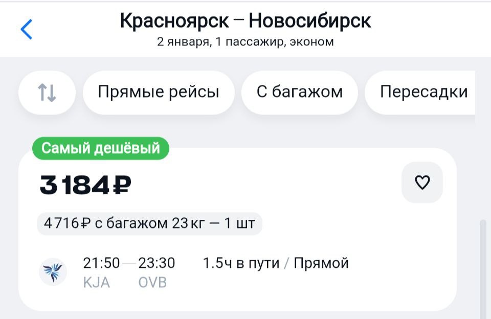 Какие планы на 2 января? 🧐 https://aviasales.tpm.lv/FvY3HnFS #OVB @KJA