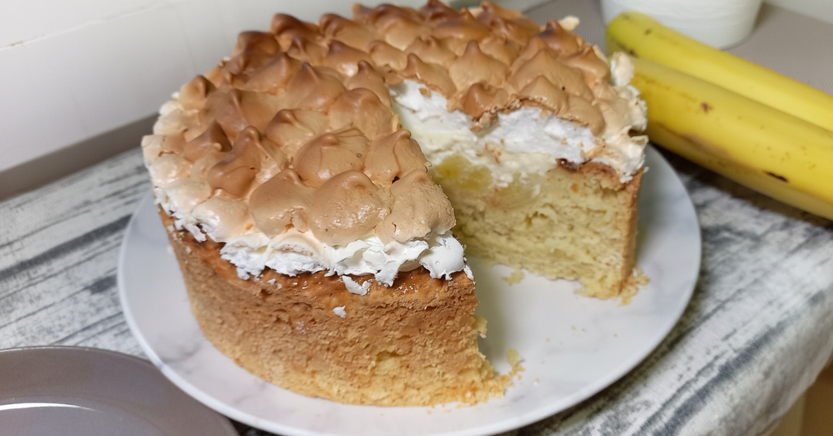 Предлагаю вам рецепт очень вкусного пирога с бананом. Этот пирог идеально подойдет для праздничного стола, благодаря своему нарядному виду и сочетанию бананов с меренгой. Ингредиенты: Для теста: - Пшеничная мука — 200 г - Разрыхлитель — 1 ч. л. - Сливочное масло — 100 г - Соль — 0,5 ч. л. - Сахар — 30 г - Ваниль — 0,5 ч. л. - Яйца — 3 шт. (только желтки) - Вода — примерно 60 мл Для начинки: - Бананы — 2 шт. - Сметана — 300 г (10%) Для меренги: - Белки — 3 шт. - Сахар — 150 г Тесто: Просейте муку с разрыхлителем в миску. Натрите охлажденное сливочное масло на крупной терке и перетрите с мукой в мелкую крошку. Добавьте соль, сахар, ваниль и яичные желтки. Перемешайте. Постепенно добавляйте воду, формируя тесто. Скатайте его в шар, заверните в пакет и уберите в холодильник на 30 минут. Смажьте форму для выпечки растительным маслом. Диаметр моей формы 18 см. Выложите тесто в форму, распределив по дну и бортикам. Нарежьте бананы кружочкам
