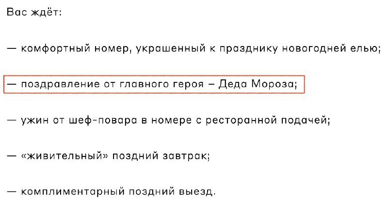 🎅Дед Мороз в каждый номер В попытках создать уникальное предложение и загрузить отель в новогоднюю ночь креатив отельеров, как правило, сводится к бесплатному раннему заезду или позднему выезду, позднему завтраку с игристым и поздравительному комплименту при заезде. Но есть отели, которые идут дальше и дополняют праздничный пакет индивидуальным поздравлением от Деда Мороза прямо в номере. Мы всё выяснили - действительно, планируется визит Деда Мороза персонально к каждому гостю, проживающему в ночь с 31 декабря на 1 января. Поздравления обещают и детям, и взрослым. Идея не новая, но с профессиональной точки зрения в ней сразу возникает целый ряд вопросов: • Кто будет тем самым Дедом Морозом? Привлекать профессионального актёра на весь день - дорого. Или бороду будет надевать администратор между заселениями? • Как выстроить график поздравлений, не зная точного времени заезда гостей? Дед Мороз дежурит весь день? А если гостей окажется слишком много? • Как вообще выглядит поздравле