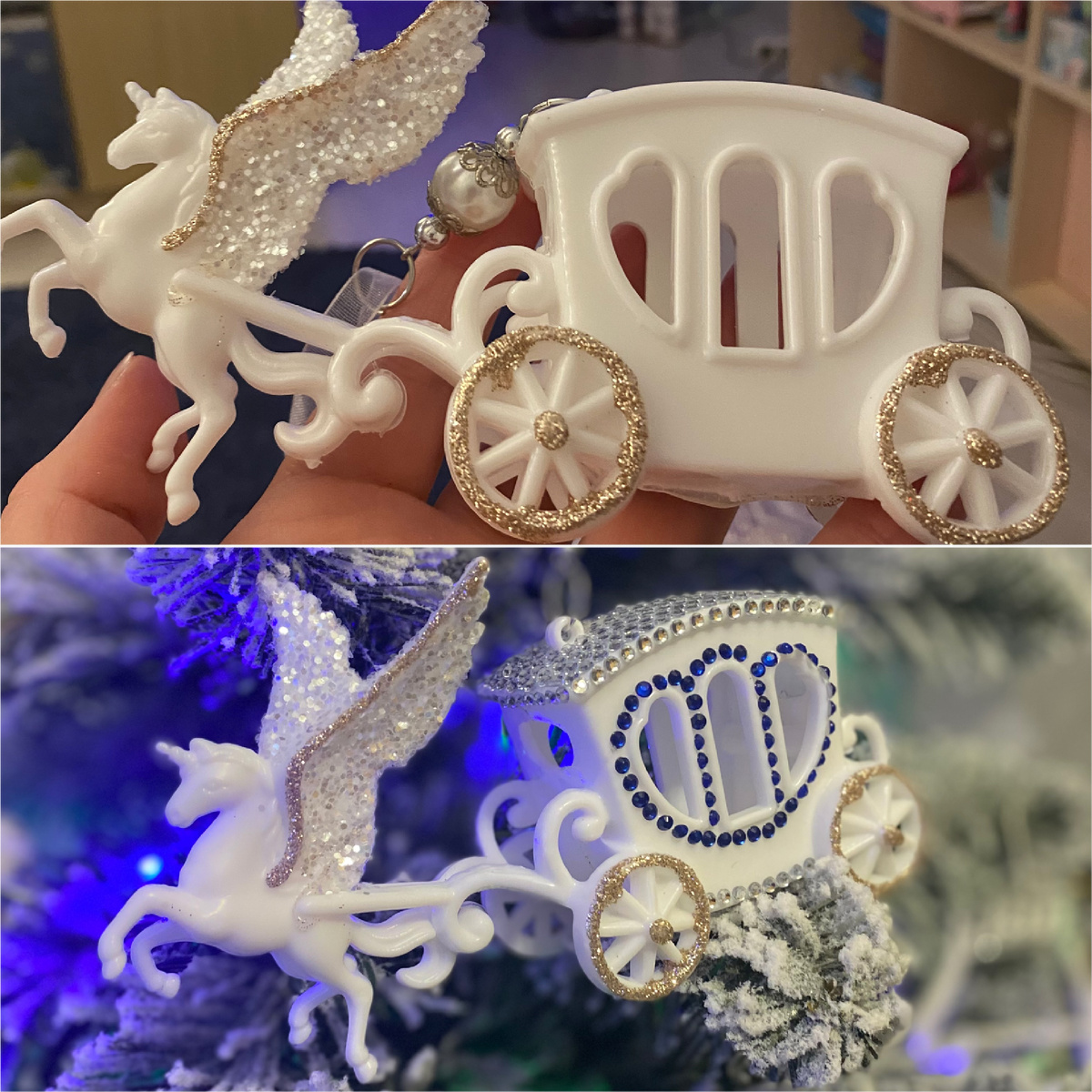 Вдохновлённая обновленной новогодней игрушкой, каретой, появилось желание, что то ещё смастерить и украсить. Заказала пустые сферы для новогодних шаров, диаметром 8 сантиметров. Еще осенью насобирали с дочкой сосновых шишек. Белый новогодний шар с сосновыми шишками Искусственным снегом побрызгала шишки. От подарков остался наполнитель. Собрала всё в новогодний шар. Залила бока новогоднего шарика горячим клеем из пистолета и посыпала блёстками. Украсила пайетками в виде снежинок. Их приклеили на жидкие гвозди. Висит новогодний шар и украшает ёлочку. Розовый новогодний шар Я использовала маленькие розовые новогодние шарики. Розовые лепестки, откуда я их взяла, уже не помню. Так же использовала стразы на клею. Шарики и лепестки поместила в новогодний шарик. А стразы приклеила вокруг шара. Нашла серебристый бисер и приклеила его на жидкие гвозди. Висит розовый новогодний шарик и украшает ёлочку. Синий новогодний шар Для шарика приготовила синие новогодние шарики, нашла зимню