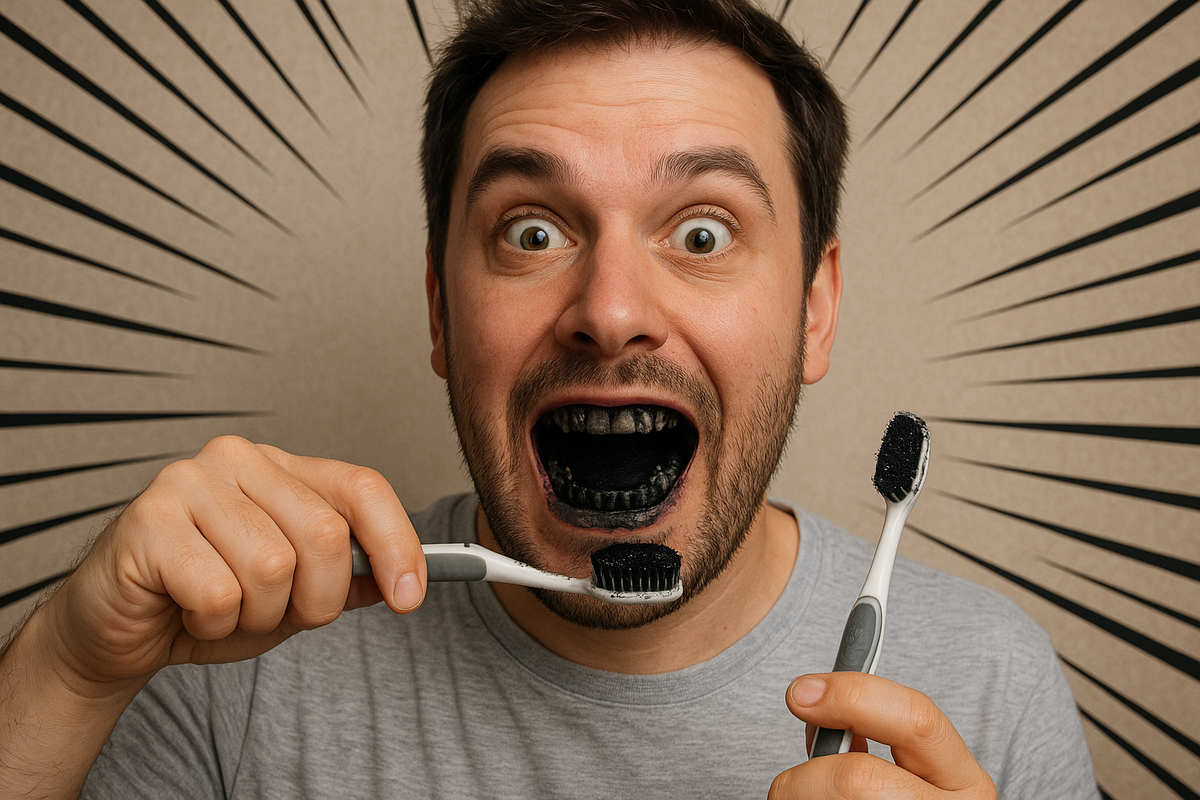 Можно ли отбелить зубы тем, что лежит на кухне? В соцсетях полно видео, где кто-то натирает зубы клубникой, посыпает их куркумой или полирует углем. Выглядит просто и “натурально”. Но натурально не всегда значит безопасно. Мы, в стоматологической клинике DANA знаем, люди хотят простых и быстрых решений. Конечно они есть, но не там где вы думаете. Но сначала, давайте поговорим честно. Сладкая ловушка — клубника Да, клубника действительно содержит фруктовые кислоты и немного ферментов. Но проблема в другом: кислота размягчает эмаль, делая ее уязвимой. После этого любое трение — щетка, уголь, даже плотная пища — снимает поверхностный слой. В Британии был известный случай: подросток разрекламировал «клубничный метод», и спустя пару месяцев стоматологи зафиксировали всплеск эрозии эмали у школьников. Сниппет был вирусным — последствия реальными. Работает ли клубника как отбеливатель? Нет. Она не осветляет пигмент, только травмирует поверхность. Любая видимая «белизна» — временный эффект з