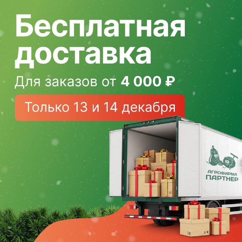 🔥 Отличные новости от Агрофирмы Партнер! Друзья, завтра стартует акция, которую многие ждали! ✨ Бесплатная доставка от 4.000₽ — только 13 и 14 декабря. Два дня, чтобы оформить заказ с максимальной выгодой и пополнить коллекцию семян без лишних затрат. Почему стоит воспользоваться акцией: — экономия на доставке, — можно собрать корзину без спешки, — в наличии все популярные позиции, — отличное время подготовиться к новому сезону. 📌 Успевайте оформить заказ 13–14 декабря и получить бесплатную доставку при покупке от 4.000₽ в интернет-магазине Агрофирмы Партнер.