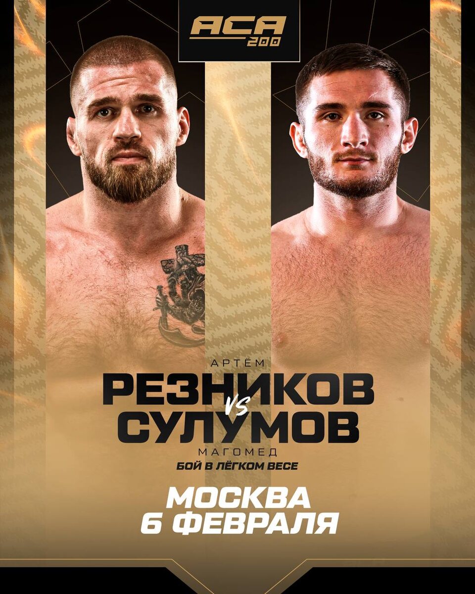 ✅ОФИЦИАЛЬНО Артем Резников vs Магомед Сулумов. 6 февраля. АСА 200 Кто ваш фаворит? ❤️ — Резников! 👍 — Сулумов! 👊 Подпишись на Meta MMA | Meta MMA в MAX | Наш канал в ВК