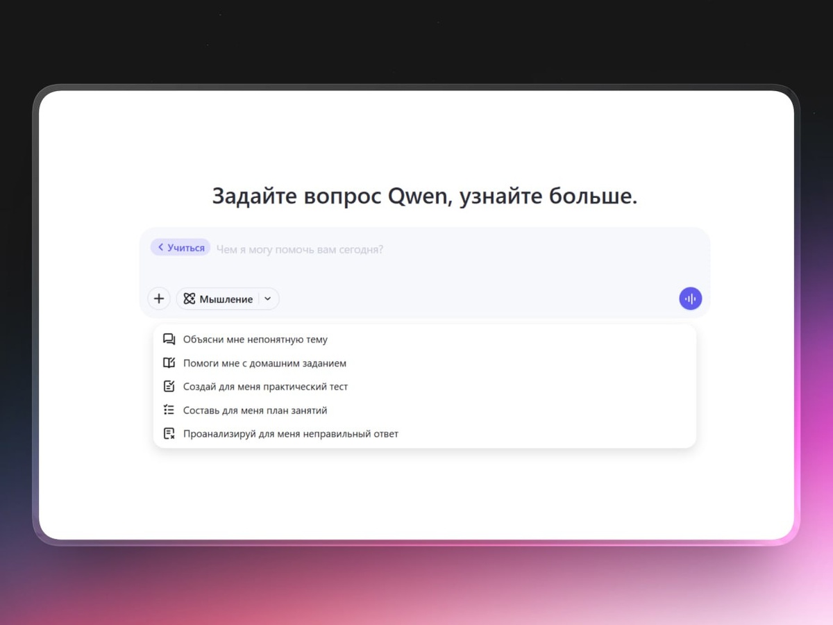 Qwen выпустил личного ИИ-репетитора В режиме Qwen Learn чат помогает не просто читать информацию, а по-настоящему её понимать и запоминать. Он работает на модели Qwen3-Max и использует подходы из психологии обучения, чтобы выстраивать для вас такой путь обучения, который подходит именно вашему стилю мышления. Он не просто даёт ответы, а шаг за шагом ведёт вас через вопросы, как внимательный учитель. Он подстраивается под ваш уровень, чтобы учиться было легко и понятно, и помогает выстроить простые опоры-подсказки в голове, чтобы даже сложные вещи не казались перегруженными. Тестить тут #новости@dailyprompts