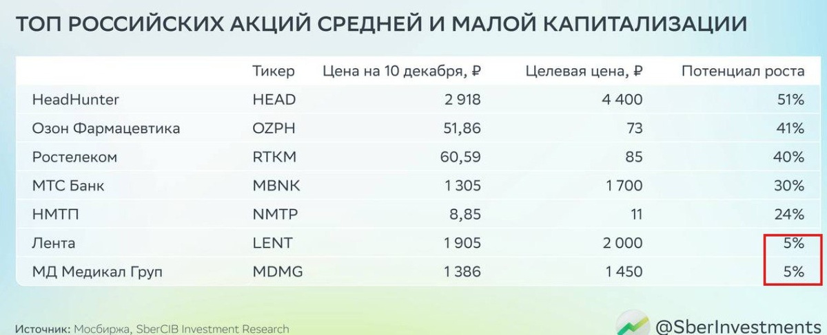 Зеленый банк обновил ТОП акций МЛ по потенциалу роста. Особенно потенциал последних двух бумаг умиляет, иногда эти две бумаги в день ходят на 5%, туда и обратно, особенно Лента. Для чего зеленый так делает, непонятно.