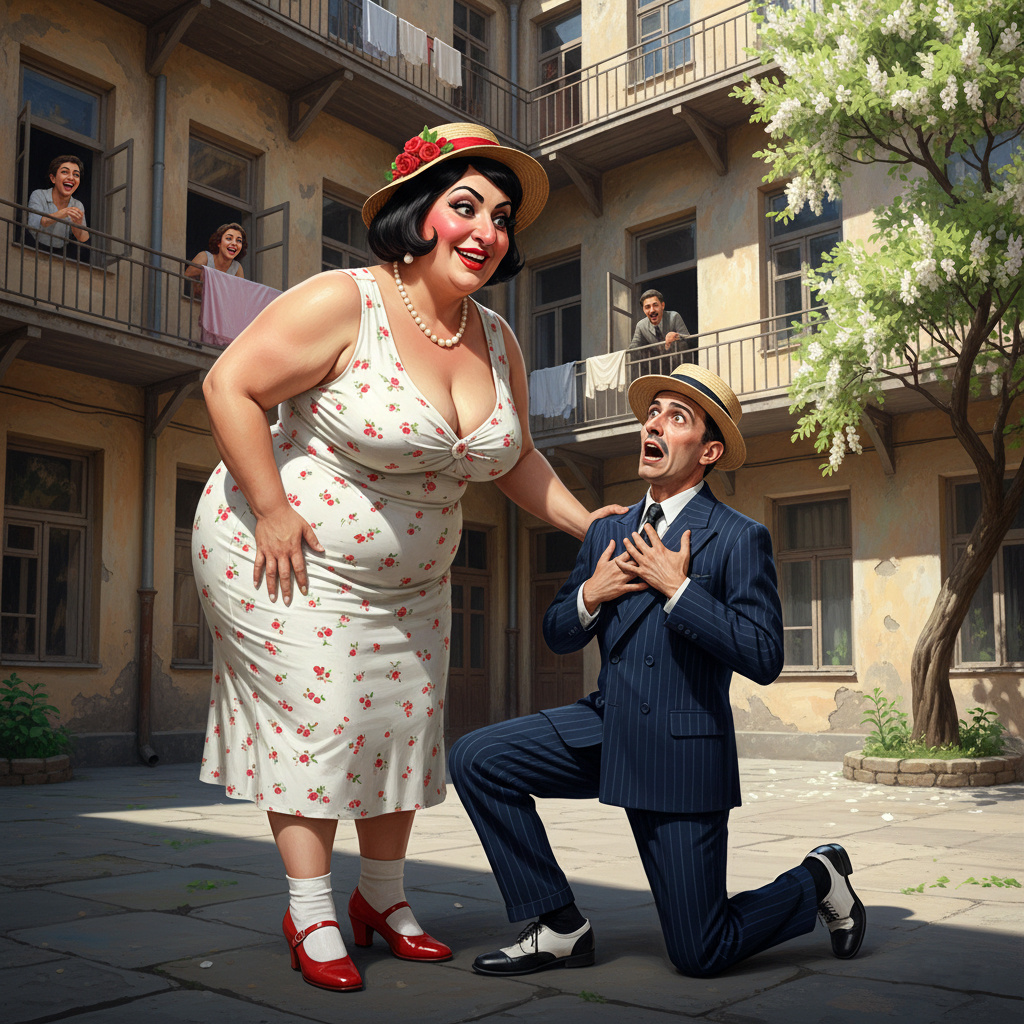 Одесский дворик. На улицу вышла колоритная дама Циля Бронштейн и увидев одиноко стоящего на улице Фиму Каца посмотрела на него так, что у Фимы от неожиданности прихватило сердце, отчего он припал на правое колено. Увидев картину маслом, Циля пошла на абордаж: - Фима, ви такой рыцарь, шо боже мой! Моё сэрдце тает, как мороженая скумбриЯ на Привозе, когда я смотрела за ваше геройство! Я плачу из своих глаз слезами восхищения! Фима, тока не пытайтесь обнять мене всю за один раз, мене много! Зато таки хватит на долго! Гарантую, вам будет не скучно! - Циля! Я не за обнять! У мене сердце! - Шо? Ви предлагаете мине ваше сэрдце? Боже ж мой, вот тех слов, которые я ждала не будем уточнять сколько десятков лет! Я согласна! - Циля! Я таки должен подумать! - Стоять!!! Шо значит: «я должен подумать?» - Фима, почему ви вдруг сразу побледнели вашей внешностью? Ви шо, хотели предложить мине сэрдце без руки, в неполном комплекте? Таки, Фима, шо я вам скажу — этот гешефт вам не обломится, даже и не пыт