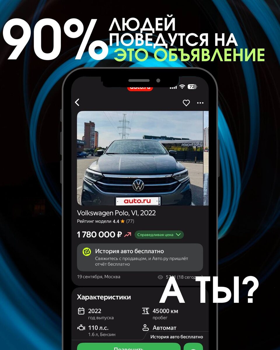 Обычный рабочий процесс - фильтруем тачки на классифайдах. Объявление на авто.ру. Симпотный polo - комплектация «жир-жирный», я таких не встречал даже. Продавец и цену поднял недавно. Ну точно «пирожок»
