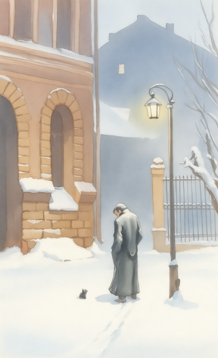 Иду один, в вечернем сумраке зимы. Вроде ночь, а всё так сияет. Белоснежный бал, Кружится надо мной. Хруст снега под ногами, Пробуждает тишину. Снежинки колбельную играют И возле фонаря таятся. Среди темных крон деревьев, Выступающих фасадов. В этом белом одеянии Я увидел гостя. Сидит маленький котенок, Ловит падающие снежинки. Весь покрытый снегом, Он смотрит на меня. И мы стоим под фонарем, Под падающий хрустальный танец И смотрим друг на друга. Два одиночества встретили друг друга. Он подошел ко мне И прижался у ног моих. Я взял его на руки И положил в пальто. И вместе с ним пошел, В его новый дом. Нашел себя, В радостной улыбке. Вот так и бывает, Одиночество не всегда приносит грусть, Иногда оно дает ответы, На которые нам просто нечего ответить.