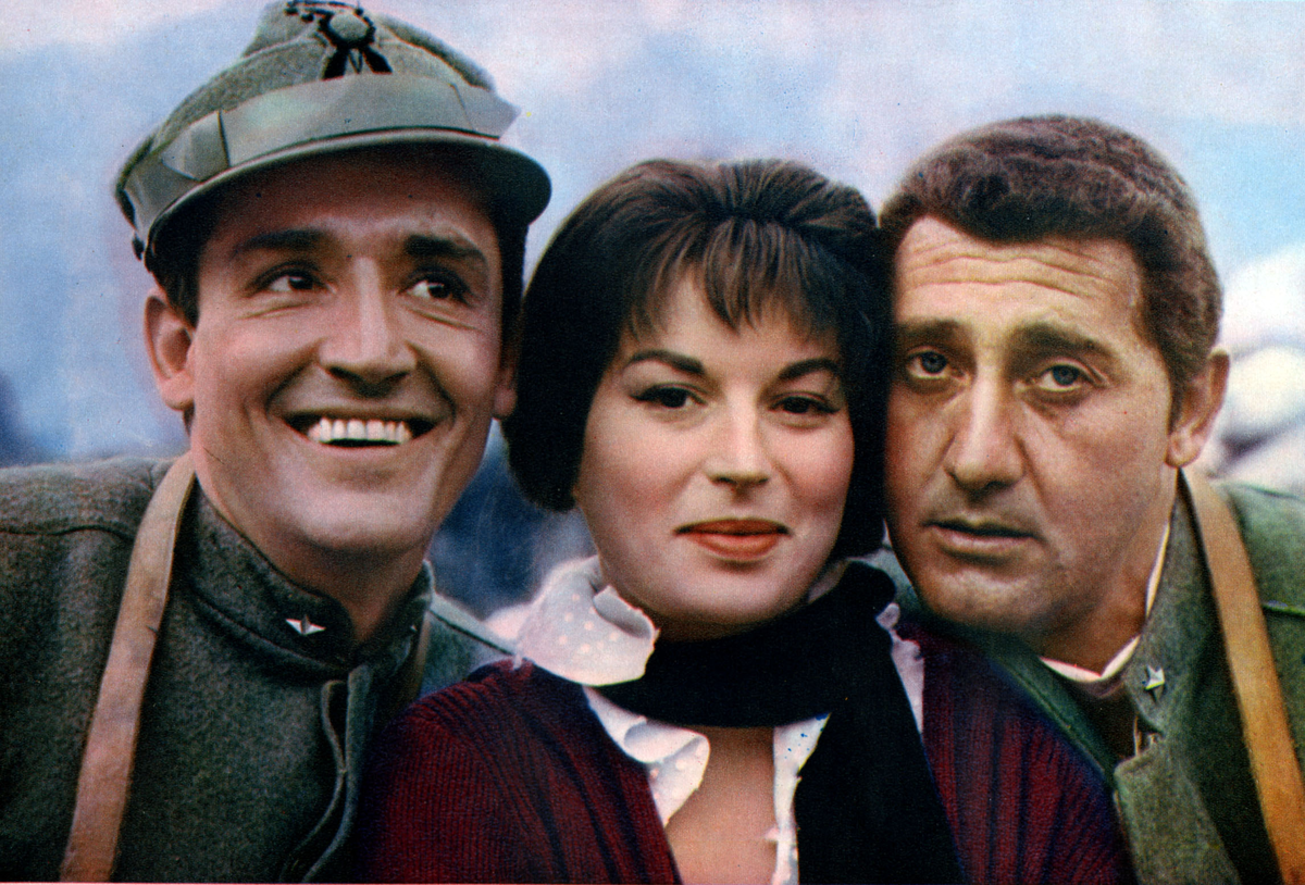 Большая война / La Grande guerra / La grande guerre. Италия-Франция, 1959. Режиссер Марио Моничелли. Сценаристы: Адженоре Инкроччи, Марио Моничелли, Фурио Скарпелли, Лучиано Винченцони (по мотивам рассказа Ги де Мопассана «Два друга»). Актеры: Альберто Сорди, Витторио Гассман, Джеронимо Меиньер, Эльза Ваццолер, Сильвана Мангано, Фолько Лулли, Бернар Блие, Ромоло Валли, Витторио Саниполи и др. Трагикомедия. Премьера: 28.10.1959. Прокат в Италии: 10,8 млн. зрителей (по другим данным – 11,2 млн. зрителей). Прокат во Франции: 1,0 млн. зрителей.