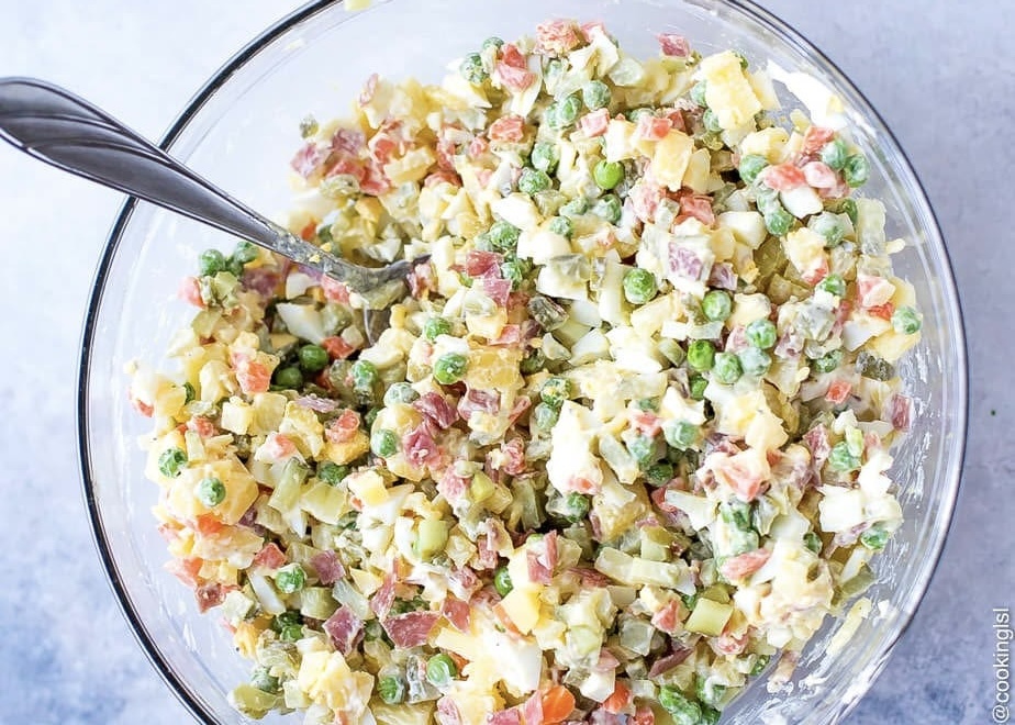 Что это: Варёная колбаса (или докторская), банка зелёного горошка, банка майонеза, солёные огурцы, яйца, картошка. Символ советского Нового года, который многие готовят «на автомате», даже не задумываясь, нравится ли его вкус.