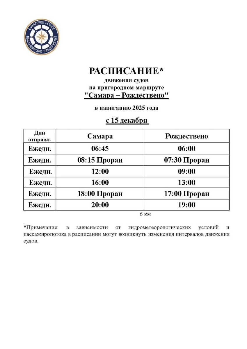 С понедельника, 15 декабря 2025 года, на паромной переправе, связывающей Самару с селом Рождествено, вступает в силу новый график движения. Изменения затронут как основные рейсы, так и отправления в сторону залива Проран, сообщили в СРПП. Согласно опубликованному расписанию, паромы будут отправляться из самарского речного порта шесть раз в сутки. Первый рейс запланирован на 06:45. Последующие отправления — в 08:15 (с заходом в Проран), в 12:00, в 16:00, в 18:00 (также через Проран) и завершающий рейс в 20:00. В обратном направлении, из Рождествено в Самару, первый паром отправится в 06:00. Далее следуют рейсы в 07:30 (через Проран), 09:00, 13:00, 17:00 (через Проран) и 19:00. Фото: СРПП Также 20, 21, 27 и 28 декабря изменится расписание электричек «Тольятти – Самара».