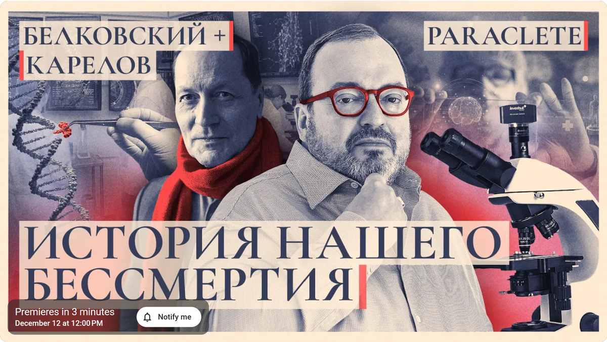 В такой ситуации ваши тело и разум словно получают сигнал: «Зачем стараться? Может, пора сворачивать лавочку». И начинают действовать именно по этому сценарию. Первый выпуск новой тематической серии программы «Параклет» на канале Станислава Белковского, называется «История нашего бессмертия». В нём мы рассказываем о «Теории жизненного задания» и «Белковской Теории старости» в их взаимосвязи с новой многообещающей теорией старости, разработанной проф. Майклом Левиным и его коллегами Лео Пио-Лопесом и Бенедиктом Харт