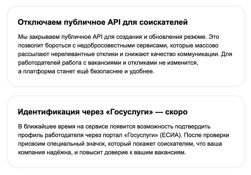 Сложнее будет менять резюме соискателям. ХХ обновление выкатил. Отклики по старинке, ручками. Ну или их "автоотклик" использовать, но это работодатель может сам отключить. Плюс для работодателя. Русский ИТ бизнес