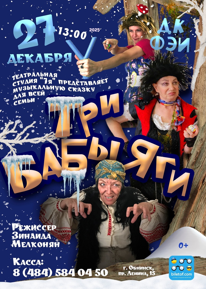 🎭Театральная студия «7-Я» представляет вашему 27 декабря в 13:00 в ДК ФЭИ музыкальную сказку для всей семьи «Три Бабы-Яги».