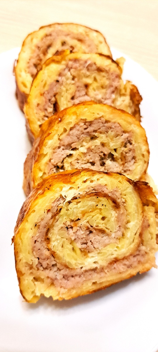 Аппетитный картофельный рулет с мясом, приготовленный по рецепту бабушки