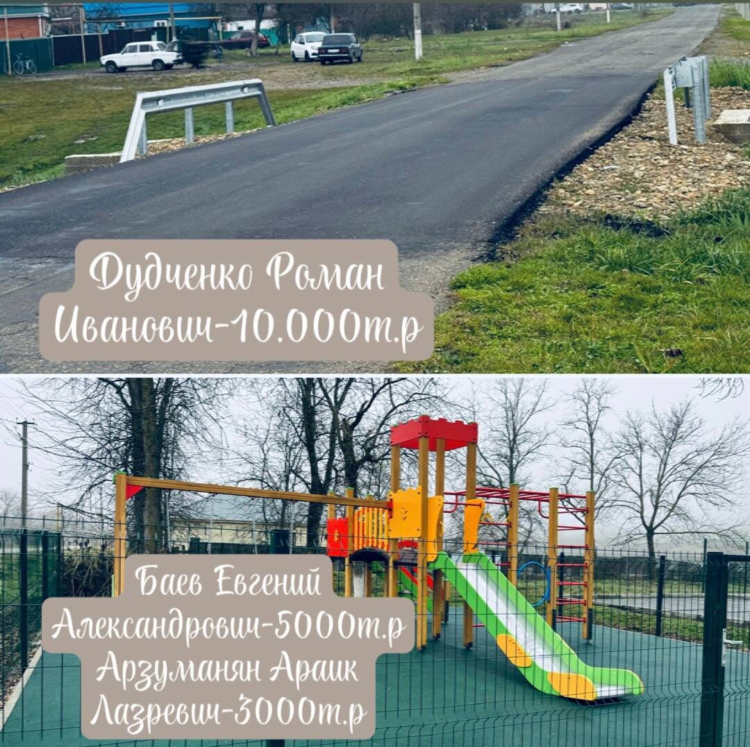 Администрация МО «Вольненское сельское поселение» выражает огромную благодарность всем, кто принял активное участие в сборе средств для Программы инициативного бюджетирования: «Строительство детской площадки в хуторе Кармолино-Гидроицкий» «Частичный ремонт и расширение дорожного полотна по улице Международная»