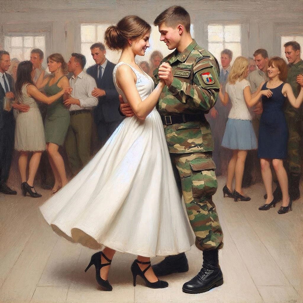Физически ощущаю, как стремительно падает у неё интерес к моей персоне. Её рука, которую я держу в своей левой ладони, вдруг становится вялой, почти неживой. И сама она как бы отстраняется от меня, ноги передвигает еле-еле, почти не отрывая их от пола. Короче, девушка просто тянет время до конца танца. И я её понимаю: она также, как и я, в поиске. Только цель её – не солдат, а курсант, то есть, будущий офицер, который, чем чёрт не шутит, глядишь - и до генерала когда-нибудь дослужится. В общем, вся она в розовых мечтах, поэтому считаю своим долгом раскрыть ей глаза на действительность.