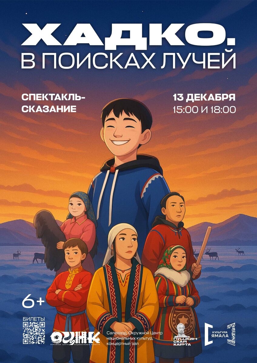 «Хадко. В поисках лучей» уже завтра 🤩 Приглашаем всех на спектакль-сказание «Хадко. В поисках лучей», который пройдет завтра, 13 декабря, в 15:00 и 18:00. 🔗Билеты доступны по ссылке: clck.ru/3QcPgU * все билеты можно приобрести по Пушкинской карте или через сервис «Морошка» со скидкой 20% 🙏 💳 #ОЦНК #Салехард #КультураЯмала