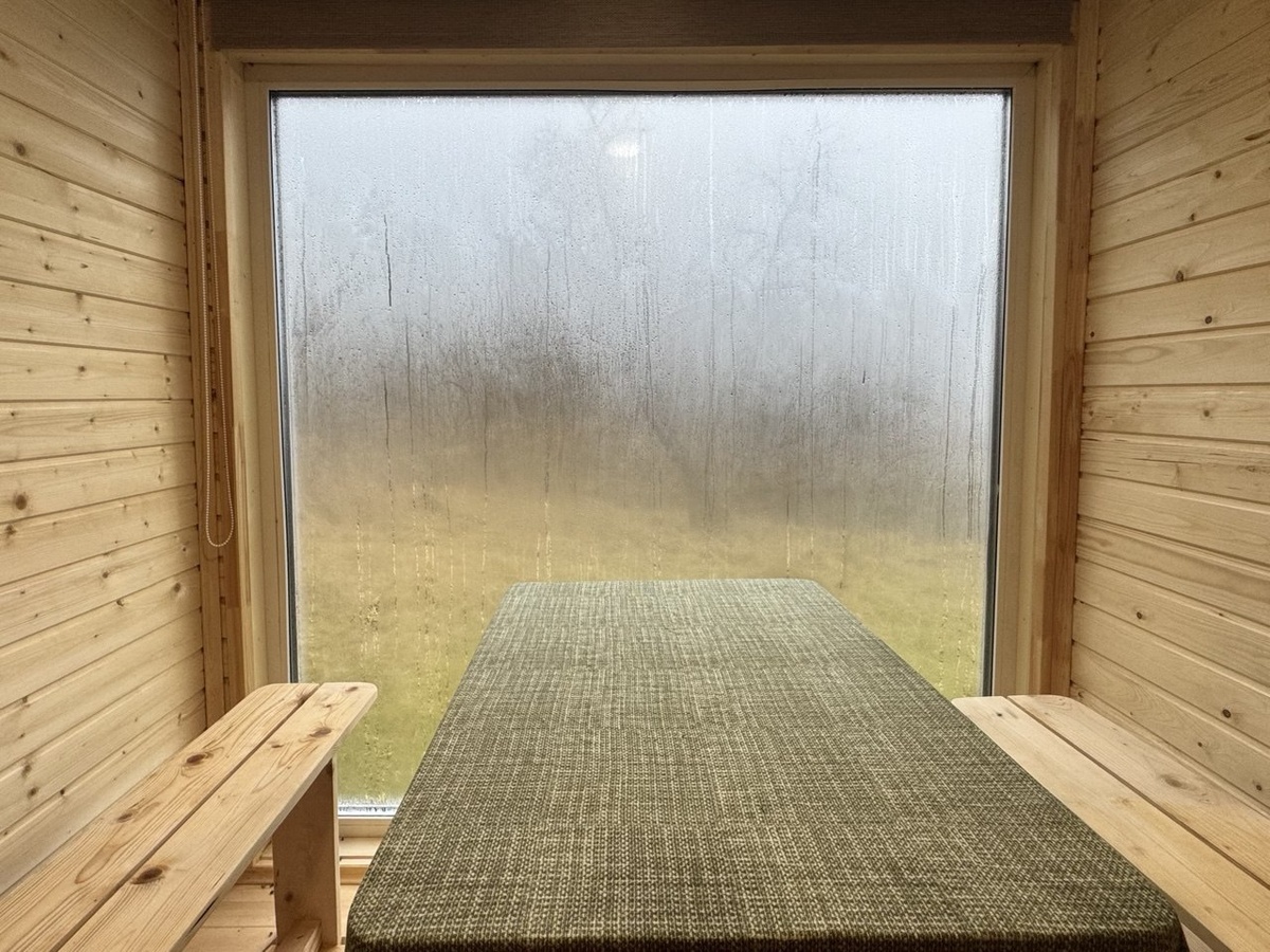 Вентиляция Очередной пример необходимости устройства вентиляции. Был приглашен в микро-баню, где совершенно точно смог оценить, как ловко можно впихнуть всё необходимое в строение 6х2,2 м, но не смог оценить по достоинству панорамное окно в комнате отдыха. Всё из-за того, что строители напрочь забыли про вентиляцию. В результате, разгоряченные тела отдали столько тепла, что окно автоматически стало водопадом. А это очень жаль, т. к. вид из этого окна супер-пупер.