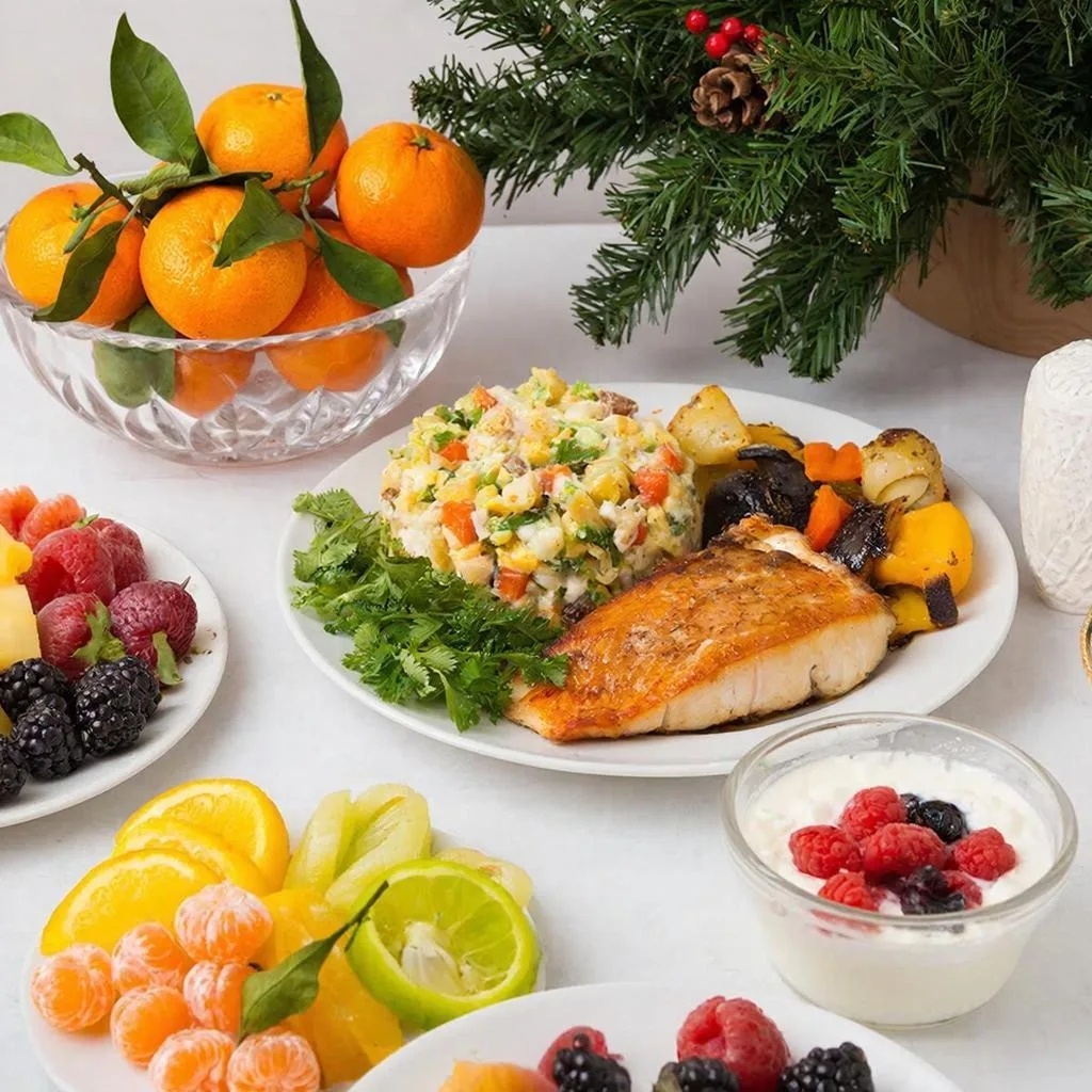 Новогодняя ночь — особенное событие, которое традиционно сопровождается застольем. Многие россияне привыкли отмечать праздник сытными блюдами вроде оливье, селёдки под шубой и торта. Однако для сохранения здоровья и фигуры можно адаптировать любимые блюда таким образом, чтобы они стали частью здорового рациона. Полезный салат оливье Классический рецепт оливье включает майонез, колбасу и картофель, что повышает калорийность и жирность салата. Вот как сделать любимое блюдо полезнее: - Замена ингредиентов: Используйте отварную курицу или индейку вместо колбасы. Картофель замените бататом или тыквой. Огурцы выбирайте свежие, а не солёные. - Майонез: Готовьте домашний соус на основе йогурта или авокадо. Это снизит количество насыщенных жиров и улучшит вкус. - Отварные овощи: Отдавайте предпочтение варёным овощам, так как они сохраняют больше полезных веществ. Пример рецепта: Ингредиенты: куриное филе, свежий огурец, зелёный горошек, яйцо, яблоко, натуральный йогурт. Приготовление: Нарежьт