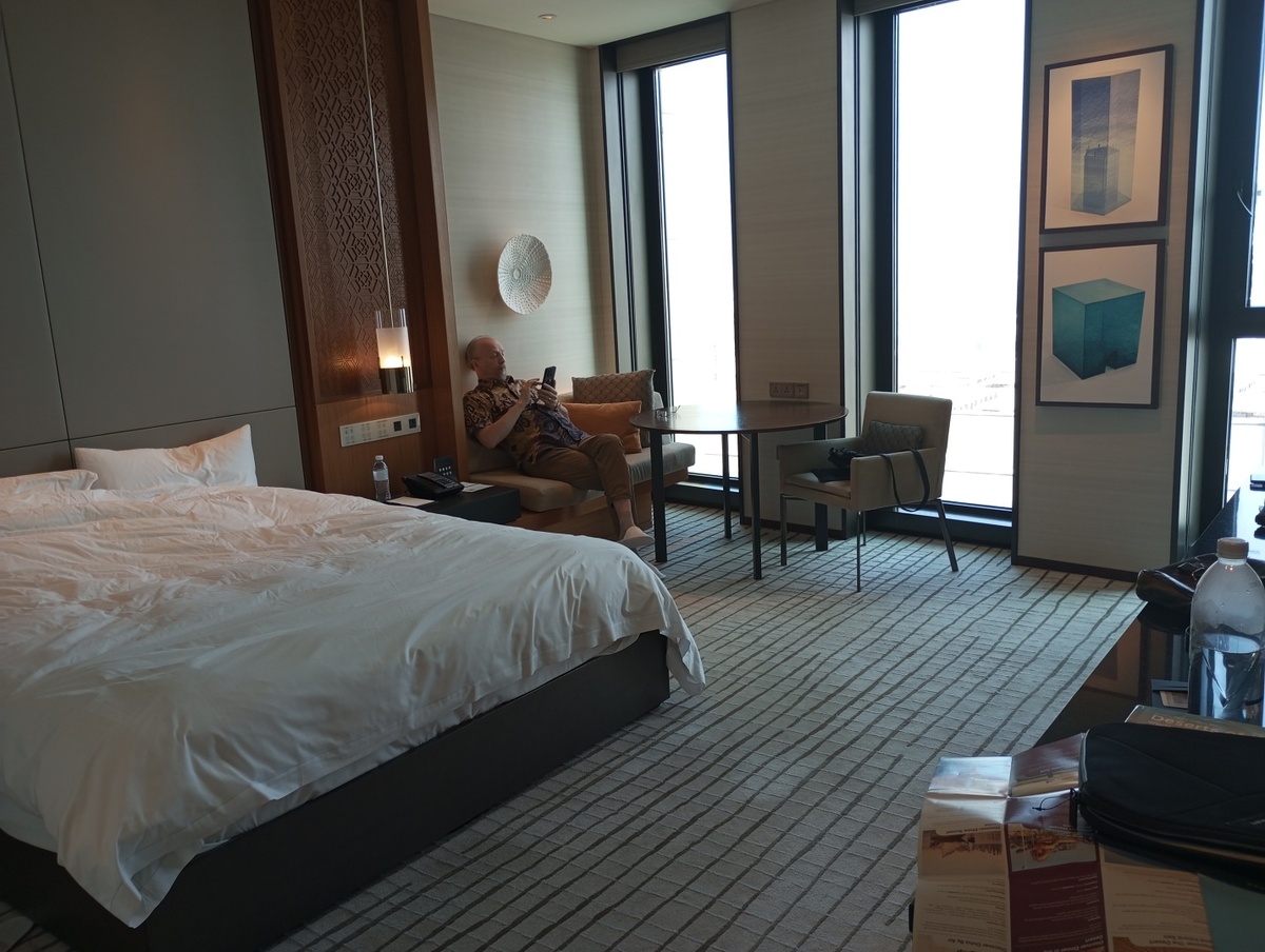B 5.35 уже лежала под боком у мужа в отеле. Нам заказали шикарный отель, Park Hyatte Doha, ночь стоит 350 usd. Я первые 2 дня путалась в туалете. Все мне казалось, что я случайно открыла дверь в коридор. Ванна просторная, перед ней свой ТВ. В зале - другой, большой.