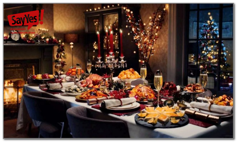 Британия 1. Индейка с начинкой (Turkey with stuffing) Описание: Основное блюдо праздничного стола. Обычно индейка запекается целиком, внутрь можно положить смесь хлебных крошек, лука, яблок, орехов и специй. Особенности: Часто подают с клюквенным соус, жареными овощами, картофелем и соусом из бизона или грудинки. 2. Рождественский пудинг (Christmas pudding) Описание: Тягучий, насыщенный сладкий десерт на основе изюма, кураги, цукатов, орехов и сухофруктов, приправленный специями, такими как корица и мускатный орех. Подача: Обычно его ставят на стол за несколько недель до Рождества для настаивания, а в сам день сервируют с бренди, поджигая его и добавляя карамельный соус или бренди. 3. Минс-пай (Mince pies) Описание: Маленькие слоеные пирожки с богатой начинкой из сухофруктов, миндаля, специй и иногда бренди или рома. Особенности: Их обычно подают во время рождественских праздников, украшают сахарной пудрой. 4. Печеные овощи и картофель Описание: Гарнир, включающий жареную морковь, бр