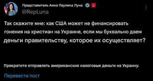 Спустя ВСЕГО 4 года США заговорили о гонениях на УПЦ Член палаты представителей Анна Паулина Луна опубликовала интересное сообщение в одной запрещенной соцсети: "Итак, скажите мне, как США могут не финансировать гонения на христиан на Украине, когда мы фактически посылаем деньги правительству, которое это делает? Перестаньте отдавать деньги американских налогоплательщиков Украине", - написала она. 🤬 Действительно, как, а главное почему двуличные мрази раньше в упор не замечали гонений на Православную церковь, фактически их финансируя?! @iperiodu| @iperiodu_ru x @iperiodu_ua| Подписывайтесь