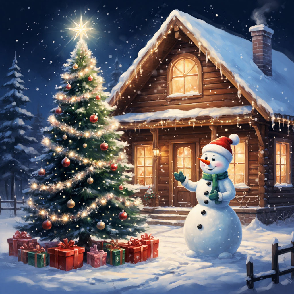 Метель и правда улеглась. Во дворе стоит наряженная живая елка в окружении четырех снеговиков: двух больших и двух маленьких.